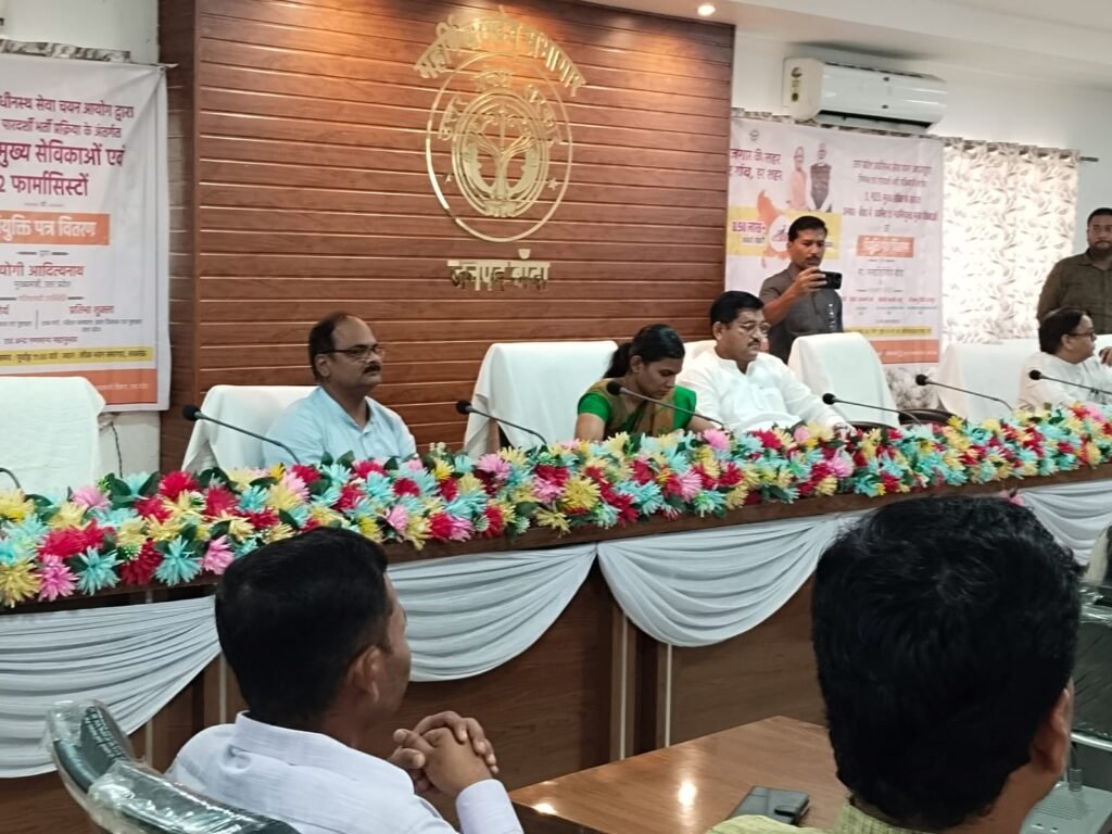 UP TIMES NEWS- बुधवार को उत्तर प्रदेश सरकार के द्वारा मुख्य सेविकाओं तथा फार्मासिस्टों के नियुक्ति पत्र वितरित किए गए। सजीव प्रसारण के क्रम में डीएम की मौजूदगी में राज्य मंत्री ने मुख्य सेविकाओं को नियुक्ति पत्र वितरित करते हुए उनके उज्जवल भविष्य की कामना की।