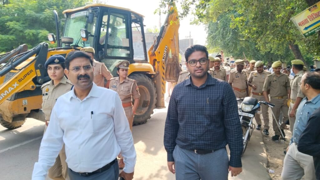 UP TIMES NEWS- शहर के महाराणा प्रताप चौराहे से लेकर पुलिस लाइन तिराहे तक मार्ग को मॉडल जोन बनाए जाने को लेकर पुलिस तथा प्रशासनिक अधिकारियों के द्वारा अतिक्रमण हटाओ अभियान चलाया गया। प्रशासन ने मार्ग को अतिक्रमणकारियों से मुक्त कराते हुए हिदायत दी है कि अगर दोबारा सड़क में अतिक्रमण किया तो