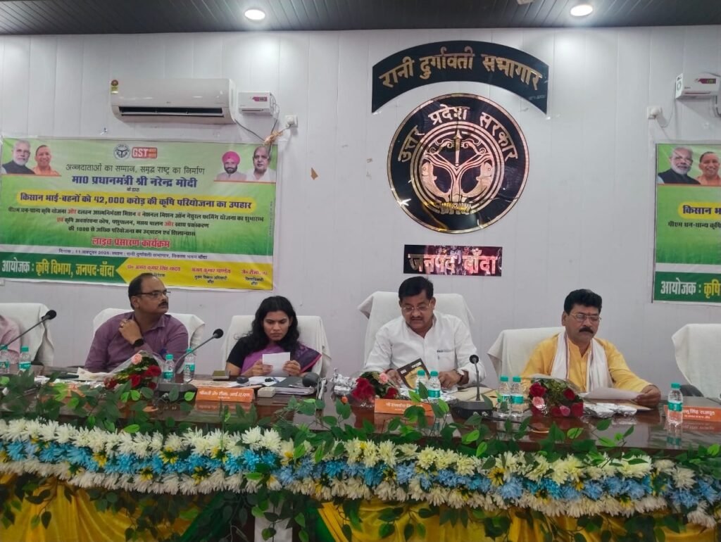 शनिवार को रानी दुर्गावती सभागार, विकास भवन बाँदा में आयोजित GST उत्सव में प्रधानमंत्री नरेन्द्र मोदी ने देशभर के किसान भाई-बहनों को बड़ा उपहार दिया। जिलाधिकारी जे० रीभा ने कहा कि अन्नदाताओं का सम्मान और समृद्ध राष्ट्र का निर्माण हमारी प्राथमिकता है। उन्होंने बताया कि प्रधानमंत्री के निर्देशानुसार जिले के किसानों को 42,000 करोड़ रुपये की कृषि परियोजनाओं का लाभ मिलेगा। इस कार्यक्रम के अंतर्गत पीएम धन-धान्य कृषि योजना, दलहन आत्मनिर्भरता मिशन और नेशनल मिशन ऑन नेचुरल फार्मिंग योजना की शुरुआत की गई।